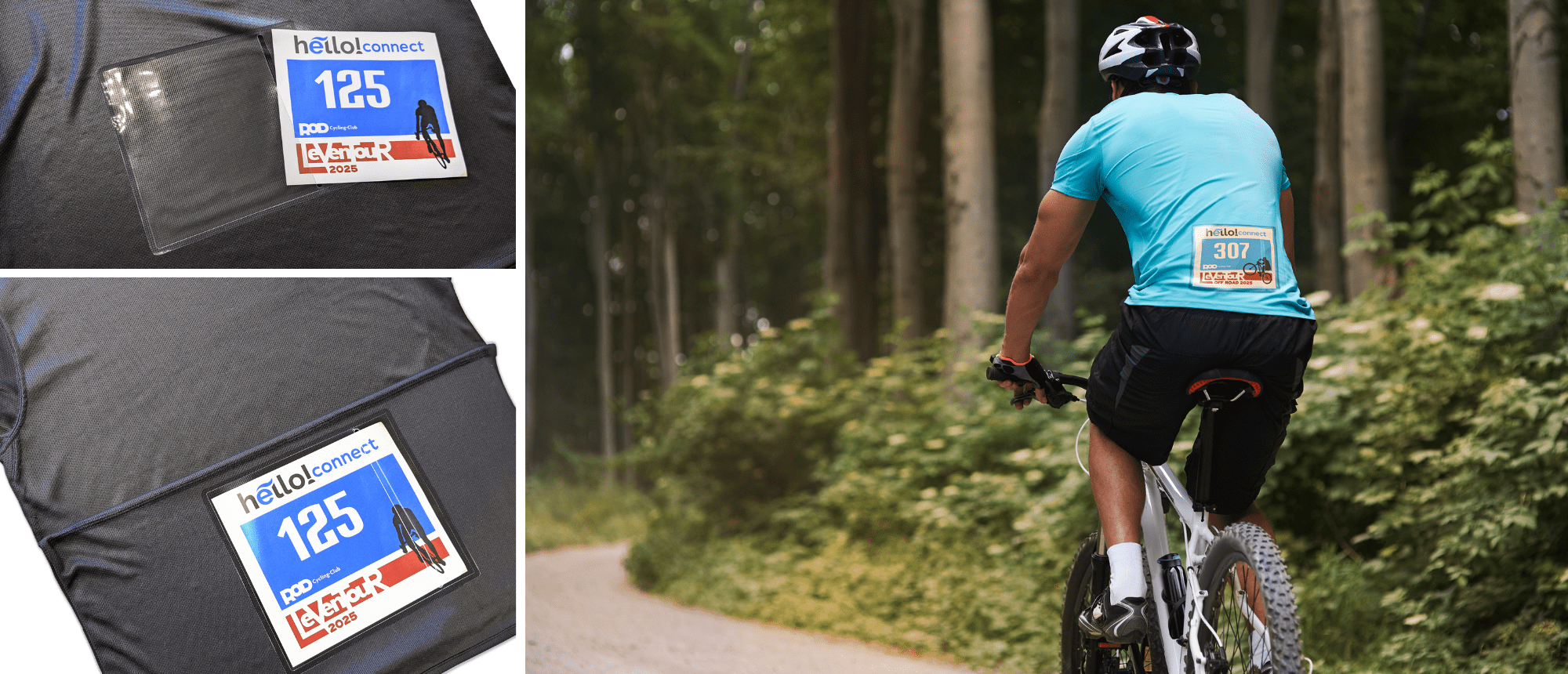 Sports professionals, clubs and cycling race organizers : discover our heat-seal bib number holder — a practical, high-quality innovation designed for visibility and performance. Our transparent pouch is easily applied using a heat press and ensures secure, stitch-free adhesion.