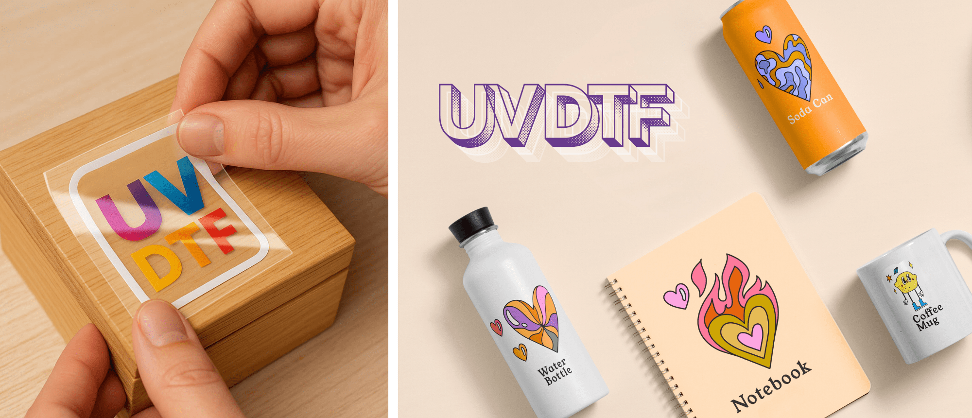 ⚠️ UV DTF is not compatible with fabric. For textile marking, explore our screen printing, DTF, or laser cut transfers.